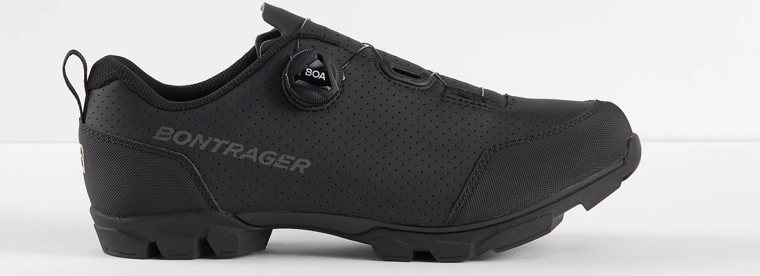De Bontrager Evoke Boa Mountainbikeschoen is een zeer prettige mountainbikeschoen met all-round prestaties. Deze schoen is gemaakt om ruige avonturen mee te beleven. De schoen heeft een Nylon composiet Bronze series zool, welke stijf is, maar buigzaam genoeg om comfortabel mee te lopen. De buitenzool is van Tachyon rubber gemaakt, welke veel grip geeft op elke denkbare ondergrond. De schoen heeft GnarGuard rubberen bekleding, welke op de neus en hak beschermt tegen stootschade door stenen en takken. Deze comfortabele schoen beschikt over een BOA L6 draaisluiting voor eenvoudige en precieze afstelling van de pasvorm. Het bovenmateriaal van de schoen is sterk en geperforeerd, zodat het tegen zwaar off-roadgebruik kan. Een zeer complete MTB schoen welke je kunt gebruiken met tweebouts SPD-schoenplaatjes.