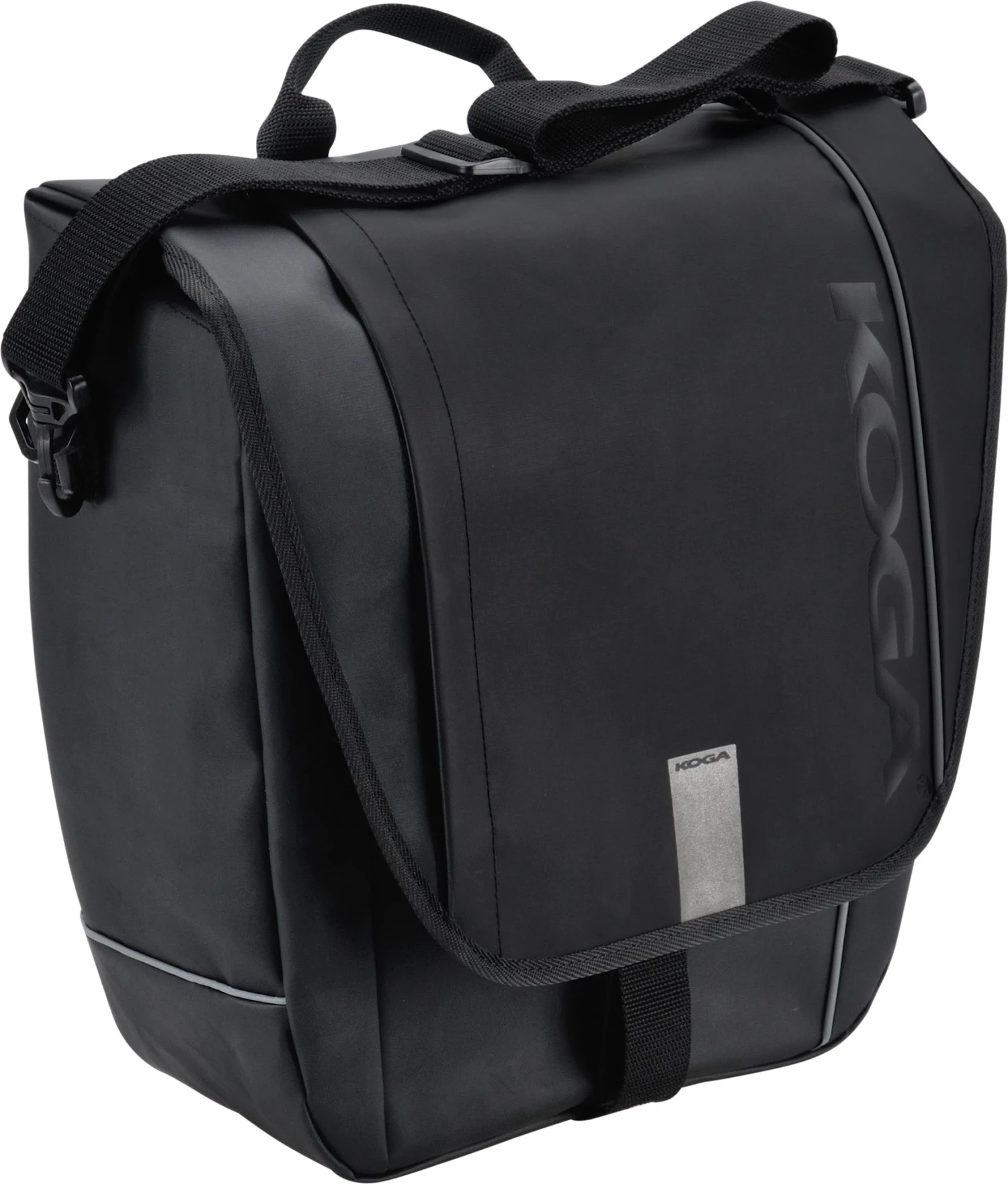 Een Koga fietstas is de finishing touch van je Koga fiets. Dit is een stijlvolle enkele tas die uitblinkt door zijn sportieve uitstraling en functionele eigenschappen. Deze fietstas heeft één groot hoofdvak. De tas aan de beide kanten van de bagagedrager worden bevestigd d.m.v. klemmen. Deze kunnen eenvoudig los- en vastgeklikt worden.